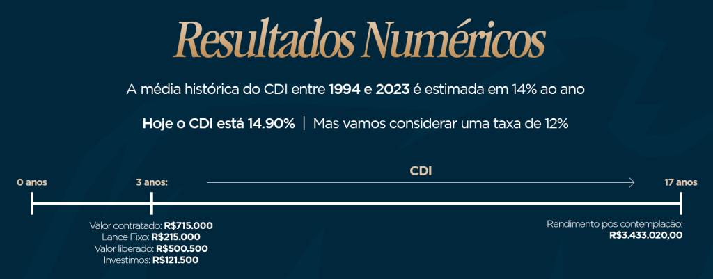 Há, porém, um ponto fundamental nessa dinâmica. O rendimento ocorre sobre o valor total da carta de crédito, e não apenas sobre o valor efetivamente investido até aquele momento. Na prática, isso significa que, enquanto o crédito permanece aplicado, ele pode gerar rendimentos que ajudam a compensar o valor das parcelas e, ao mesmo tempo, contribuem para o aumento do patrimônio ao longo do tempo.